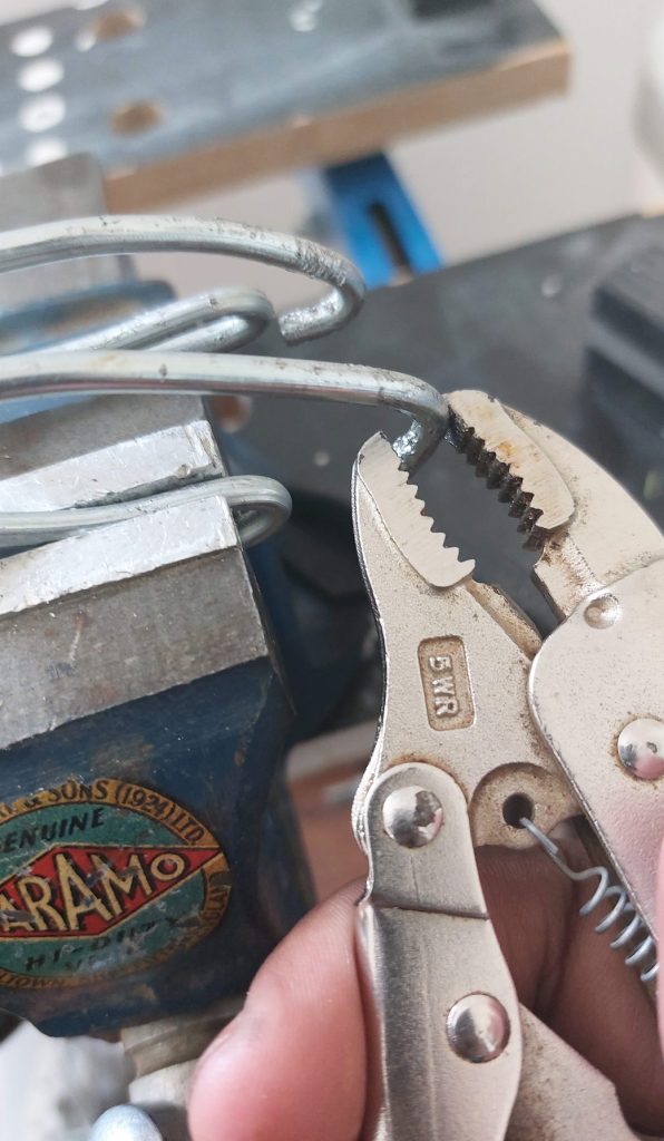 Luckily, I had wire lying around from another project and borrowed a vice from the Toronto Tool Library. I could also 3D printed my solution but I wanted to have something in my hands ASAP to avoid any procrastination on my part.