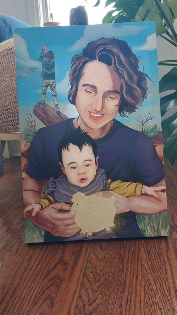 When I say I was thrilled to commemorate a memory for a new father and his daughter, it would’ve be an understatement. While traveling through Ireland, my neighbour, Julie, proposed the surprise gift. Between hikes, tea and a wedding, I was able to get this to Mr. Photocanvas, a local printer. The canvas print was my idea and the perfect way to immortalize moments. Having worked with them previously, I knew of the speed and quality in the final product.