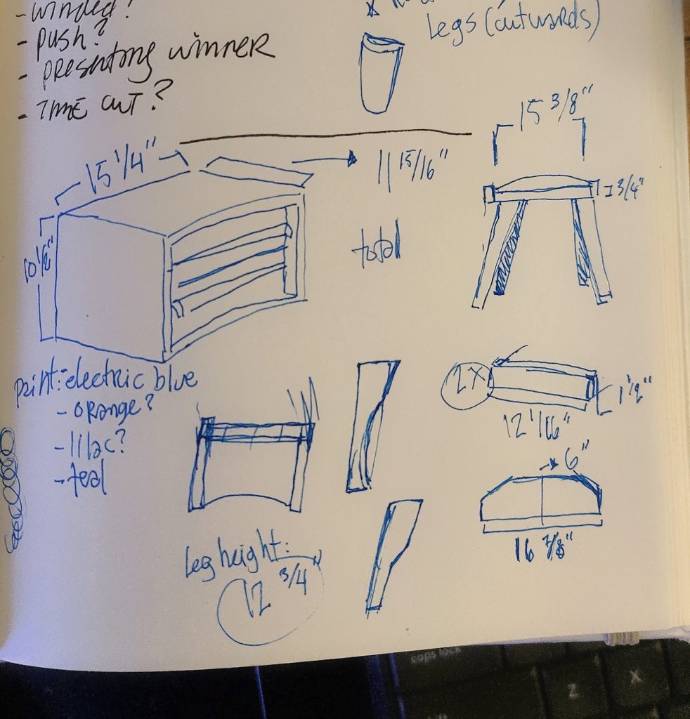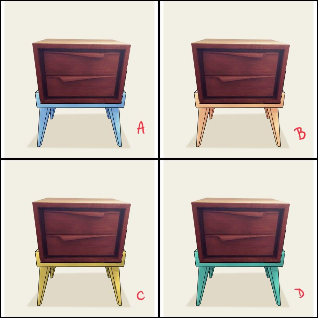 After scouring yard sales and almost going home empty-handed, this two drawer teak piece spoke to me. Small, warm tones and particular curled pulls were too hard to resist. Once home, I started sketching ideas and few measurements later, I had a solid concept.